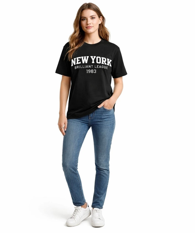 تیشرت زنانه NEW YORK با طراحی شیک و مینیمال، انتخابی عالی برای استایل روزمره، کژوال و اسپرت.