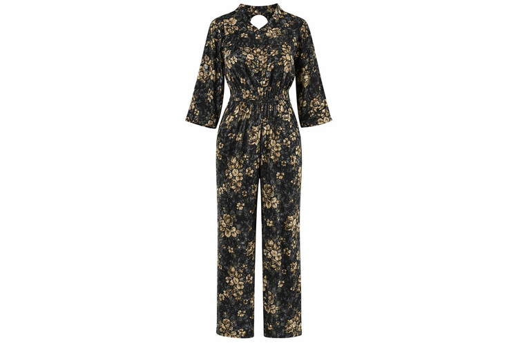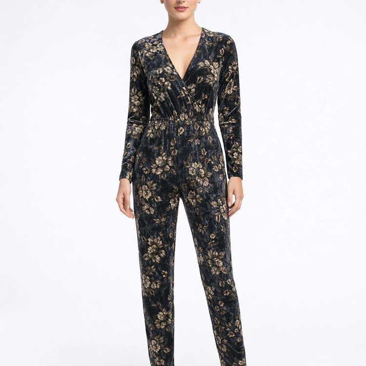 سرهمی اورال زنانه مخمل طرح‌دار یقه هفت آستین‌بلند Red Rose Mezon