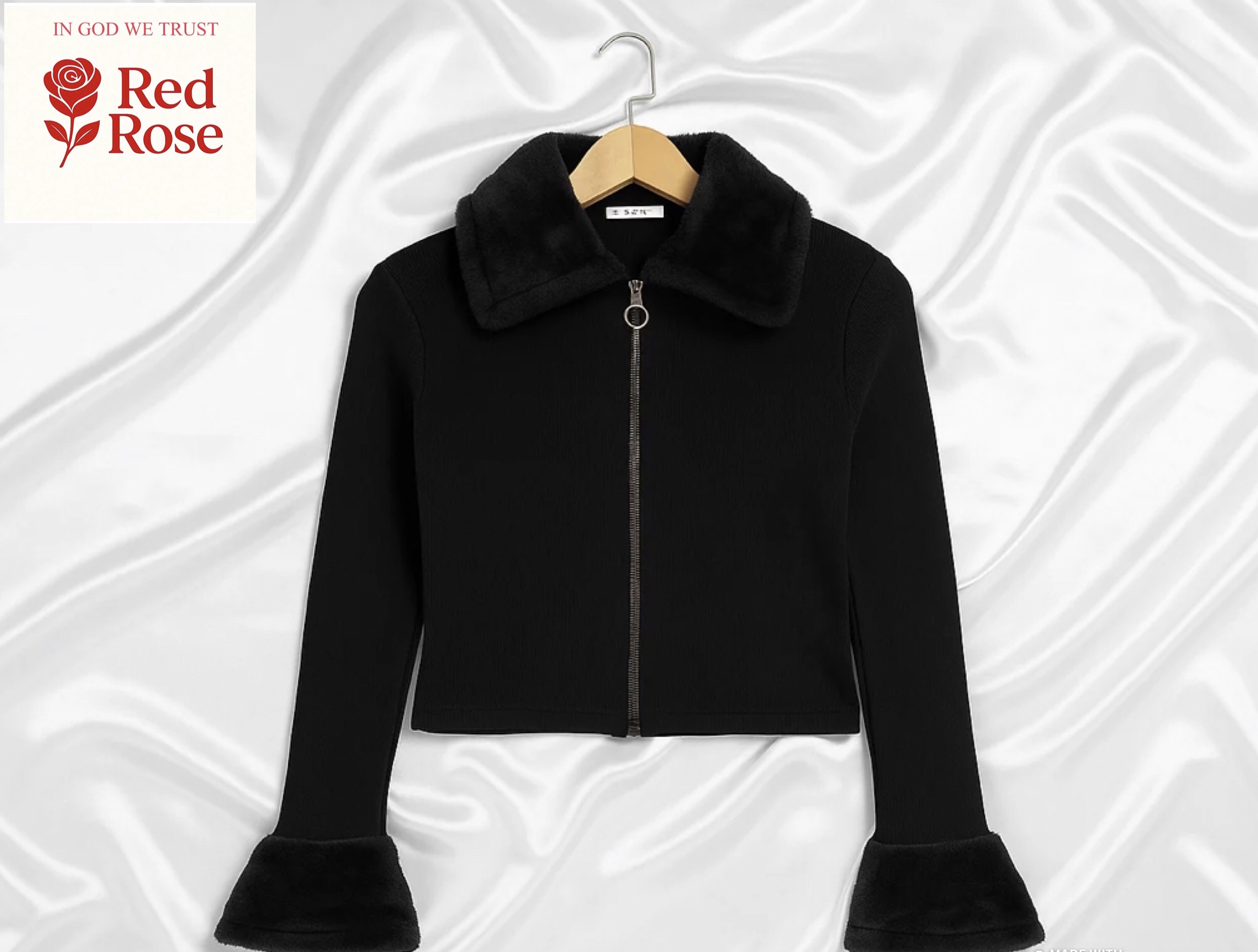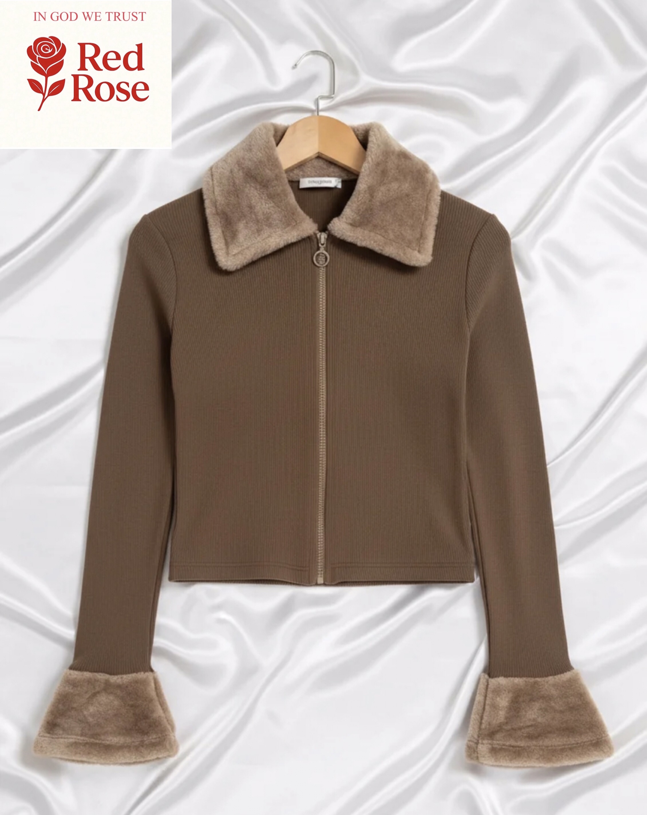 🐆✨کراپ :((لاکچری یقه و دور آستین خزدار ))🧣 🥰🍂قد کراپ:((48))((سایز:فری36الی42))🥰 🧵🍂جنس :((کشی کبریتی.))🍁